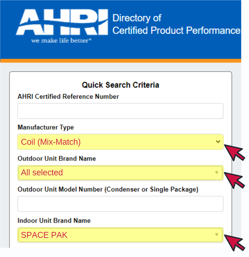 • Click the Indoor Unit Brand Name drop-down menu and select SPACEPAK